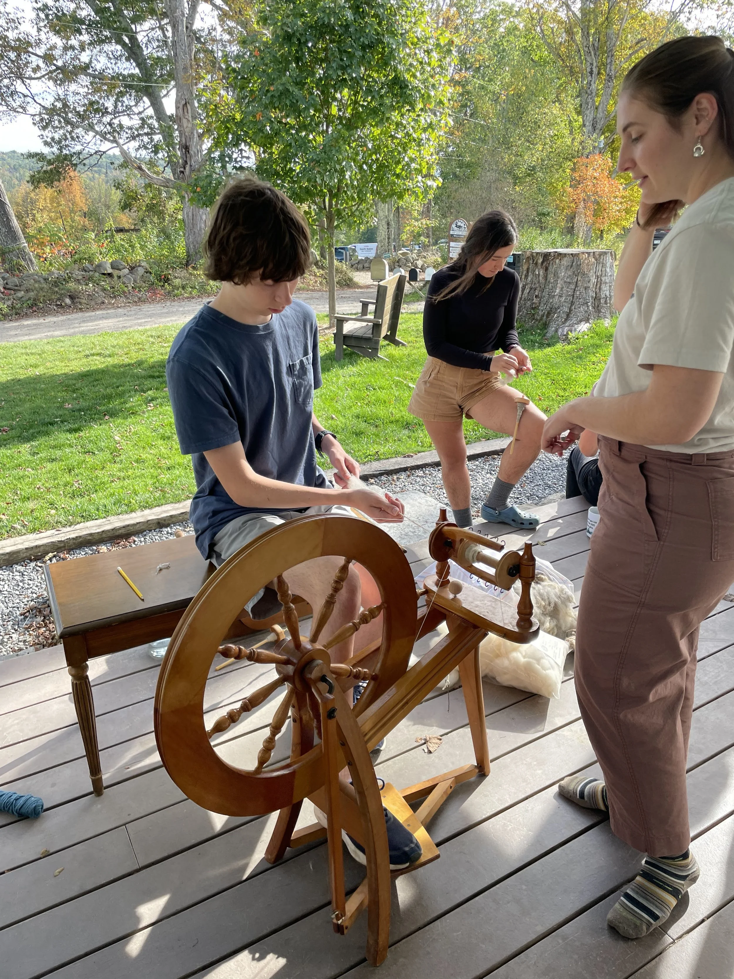 Apprenticeships are in full swing here at Glenbrook. Last week, we split into two groups. One focused on the farm and one focused on fiber arts. The farm apprenticeship started by picking popcorn, then sorting it, and leaving it in the hay loft to dry. On Tuesday we learnt how to slaughter and process chickens. Then we worked in the field with carrots, green onion, and beets, which we cleaned up at the washpack. The fiber arts apprenticeship learnt how to spin wool into yarn. They then picked marigolds from the dye garden and turned the wool into a bright yellow. Gappers started learning how to weave and got to take home the big loom.